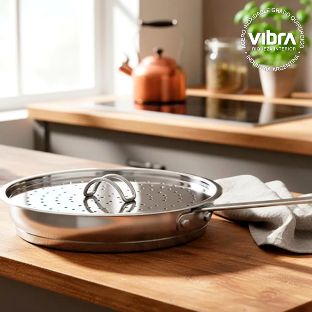 Descripción:20 x 4,5 cm. 1,000 Lts.- Con desmoldador. Para una alimentación consciente VIBRA ® diseñó una línea fabricada en ACERO INOXIDABLE GRADO QUIRÚRGICO, el más puro metal, sin poros, con brillo eterno y de fácil limpieza. Su TRIPLE FONDO TERMO-DIFUSOR , con aluminio de 5 mm de espesor, encapsulado en acero, distribuye el calor en forma pareja, evitando las adherencias del acero común y logrando una temperatura constante en el interior de los recipientes.